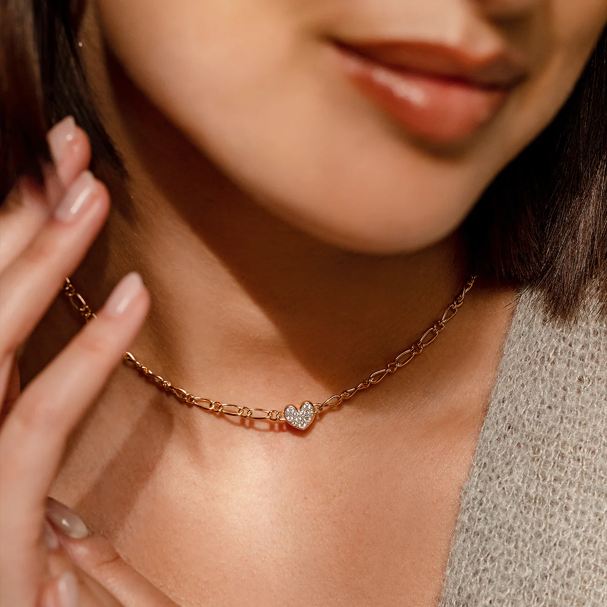 Girocollo con catena cheval e cuore piccolo con un pavé di zirconi bianchi.